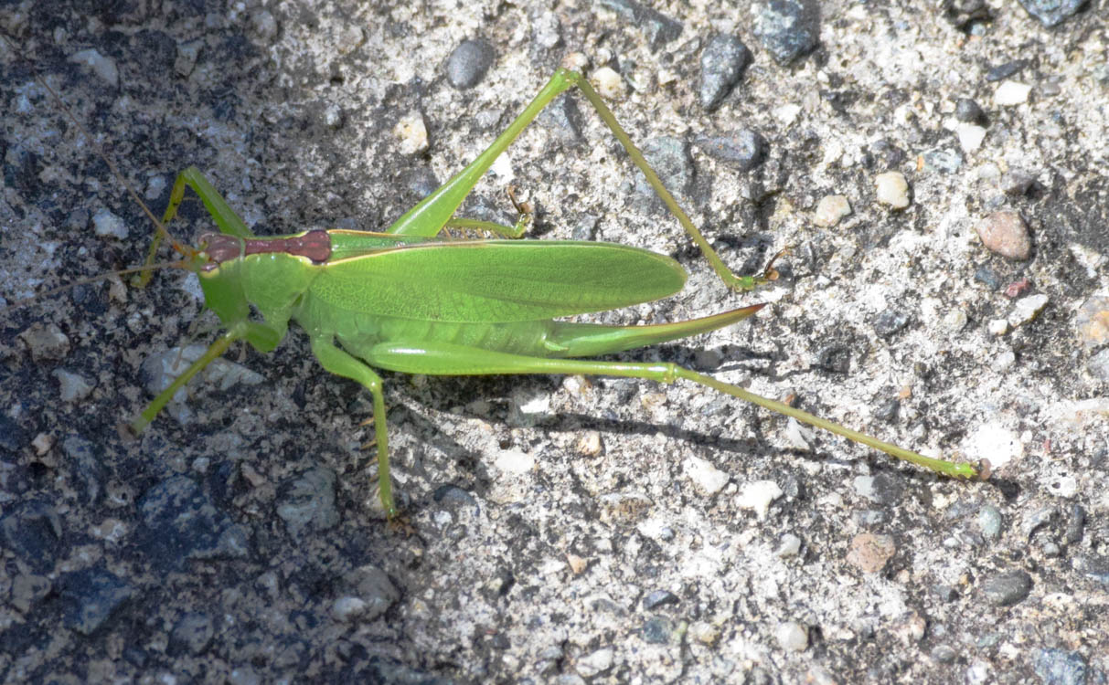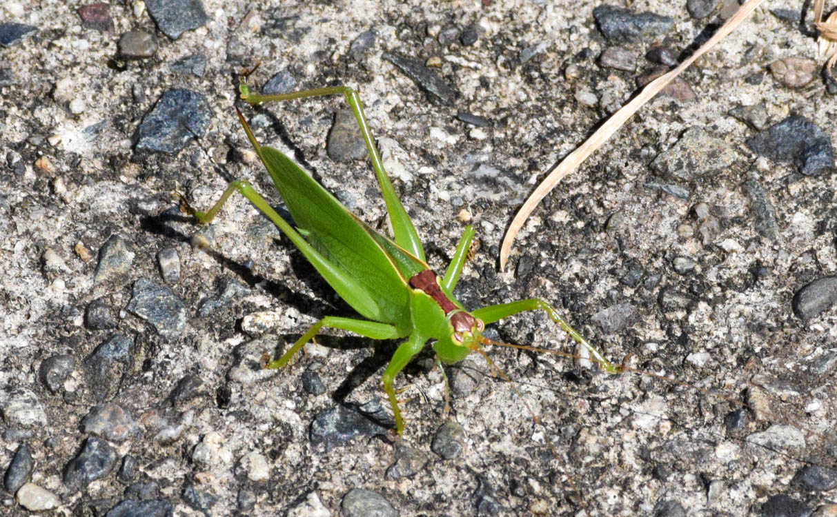 樹林やその周辺に生息するキリギリスの仲間で、8月から9月に多く見られます。