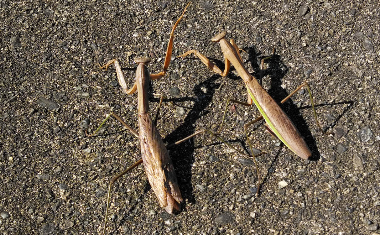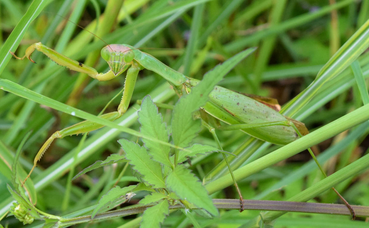 動きは敏捷ではないので素手でも簡単に捕まえられますが、大きな鎌に引っ掻かれると痛いので胸部の細くなったところを後ろからつまむように持つとよいでしょう。