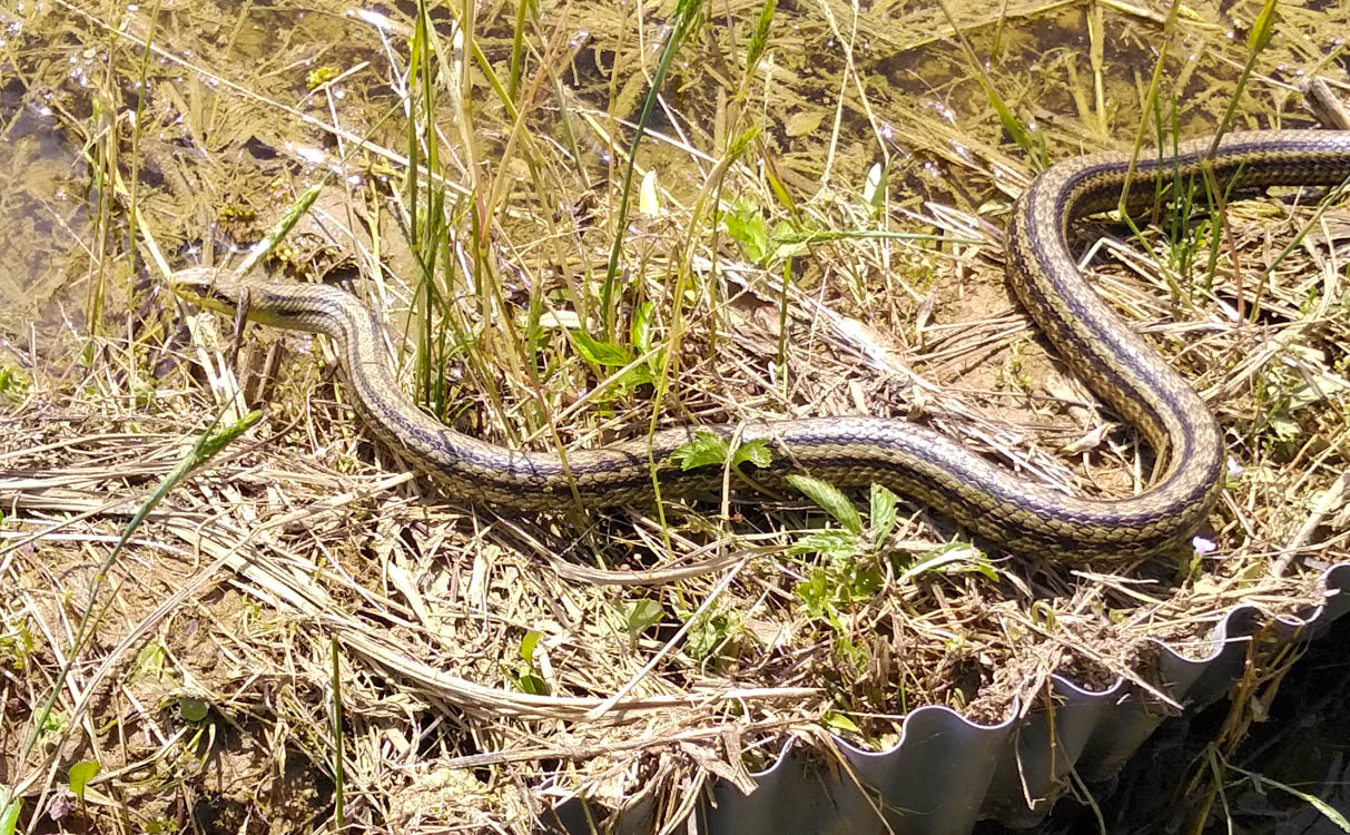 久留女木の棚田でもっともよく目にする大型のヘビで、多い時は1日に何度も出会うことがあります。