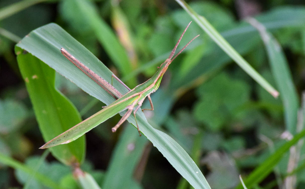 草むらで見られる大型のバッタで、見る機会の多いバッタですね。足が長く独特なスマートな体形をしています。
