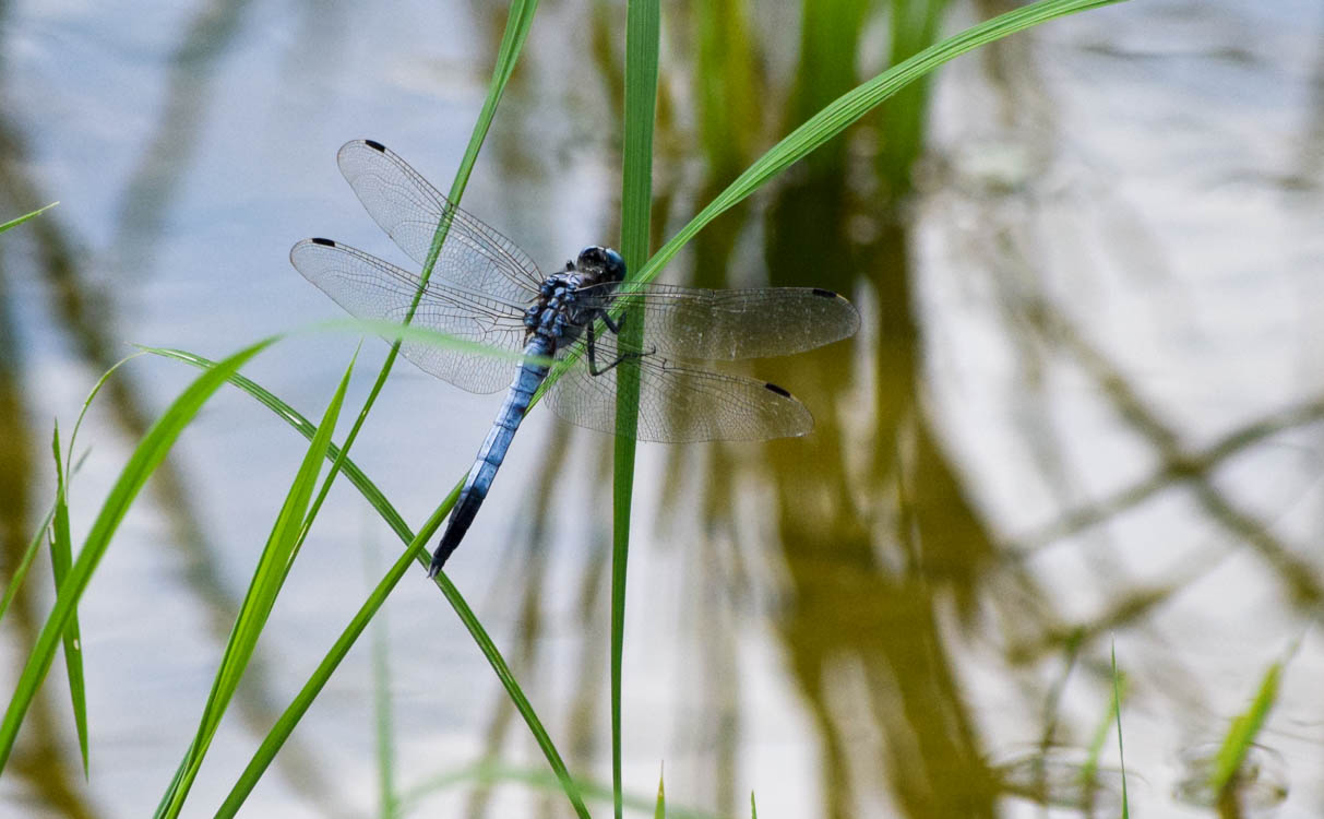 オスは成熟すると、体が青白く粉を吹いたような色になります。メスは通称「ムギワラトンボ」と呼ばれるように薄い茶褐色をしています。