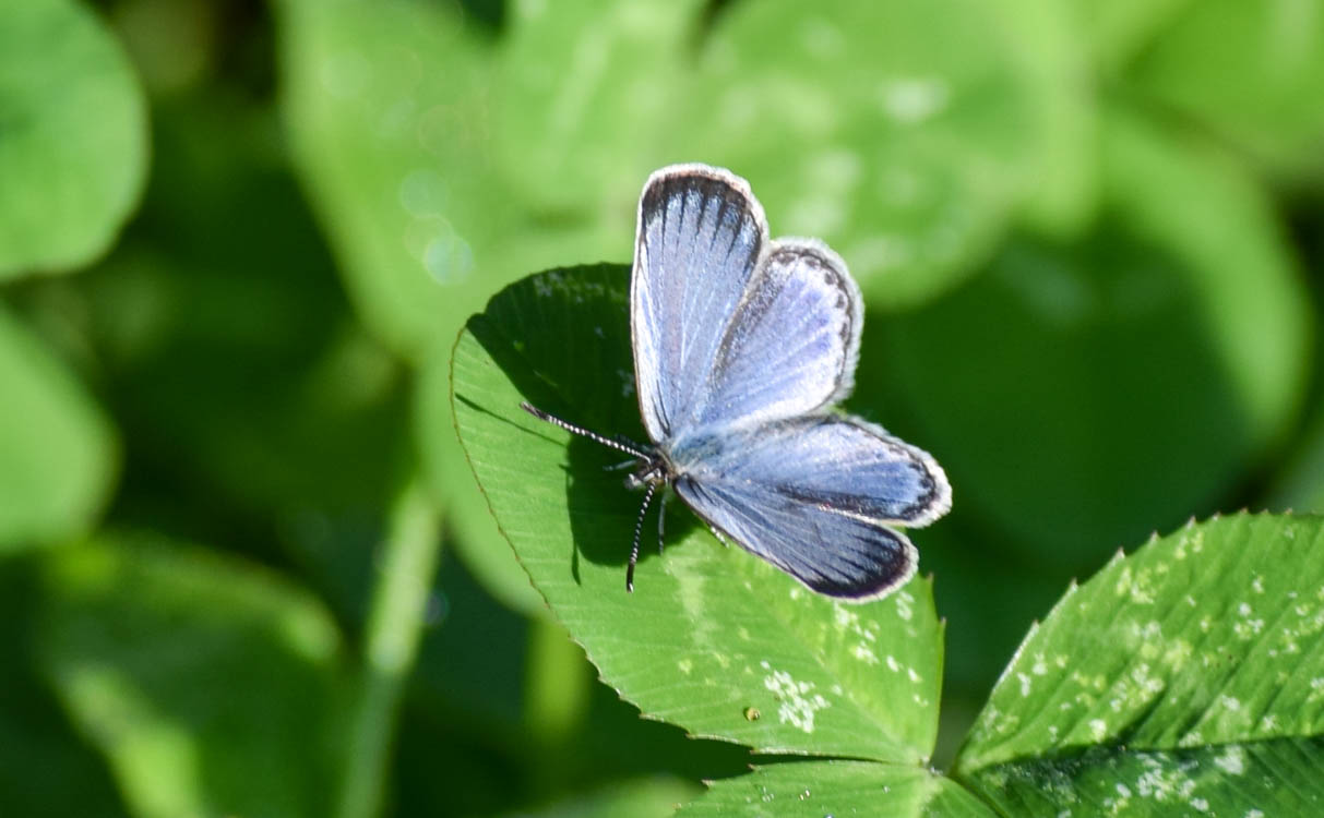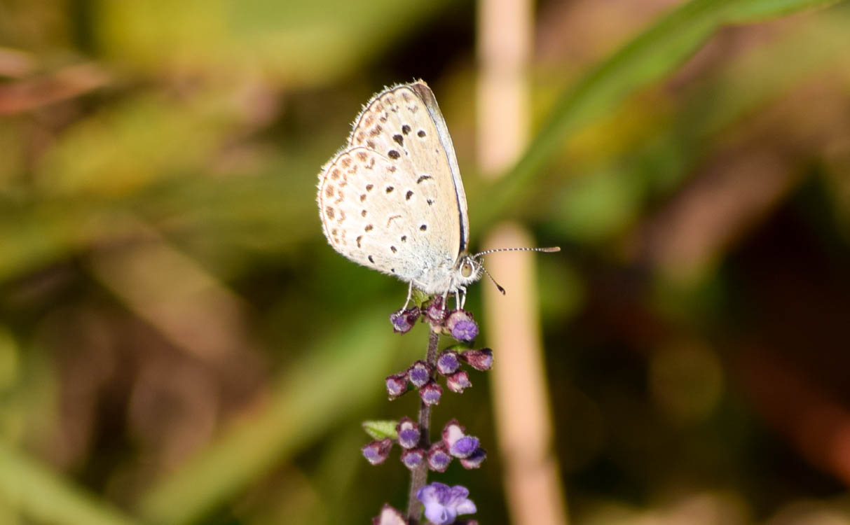 とても小さいチョウなので、普段はほとんど気にもとめていなかったかもしれませんが、止まっている時は翅を半開きにしていることが多く、開いた時の薄い紫色の翅はとてもきれいですよ。